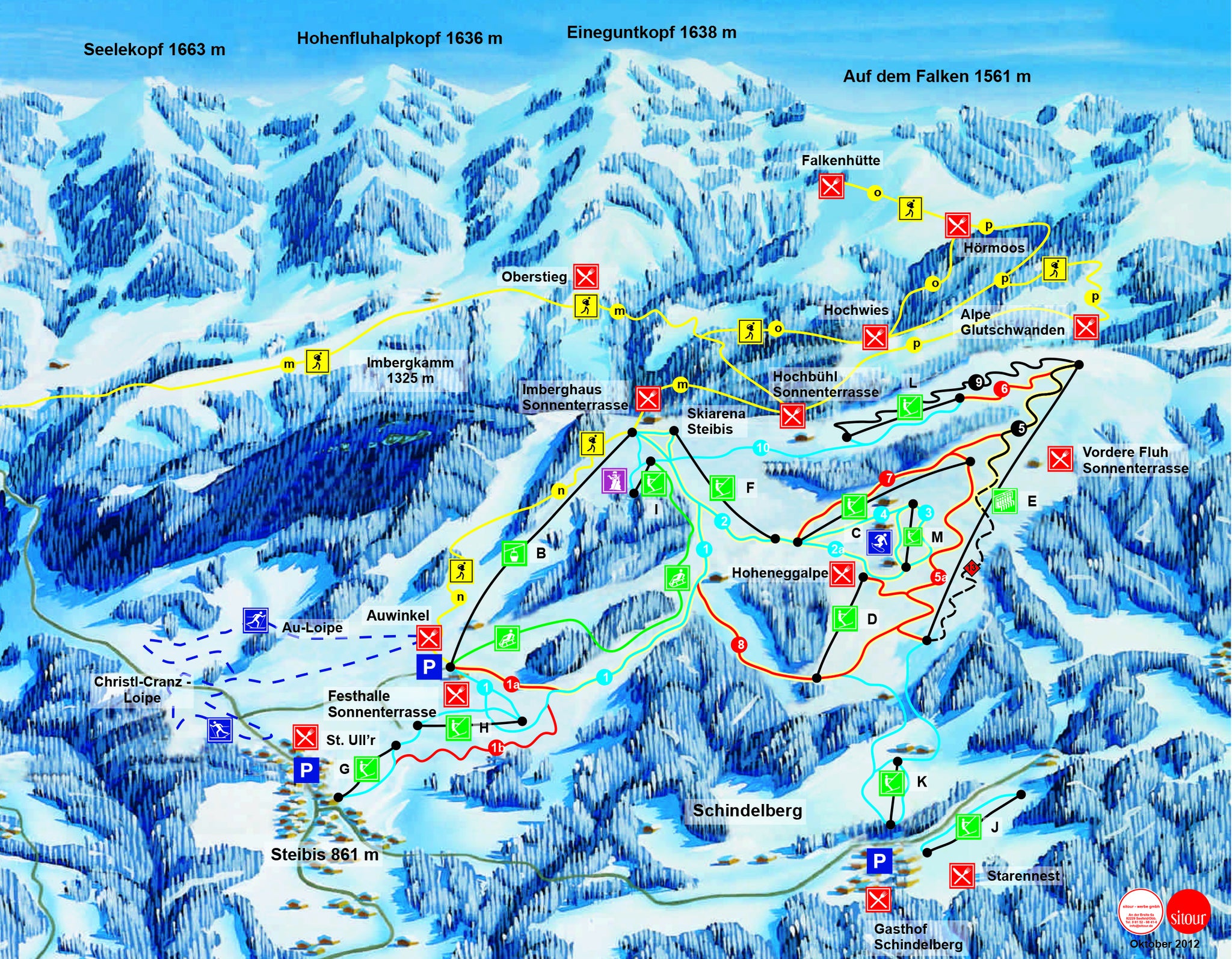 Oberstaufen - Skiarena Steibis – mapa tras narciarskich