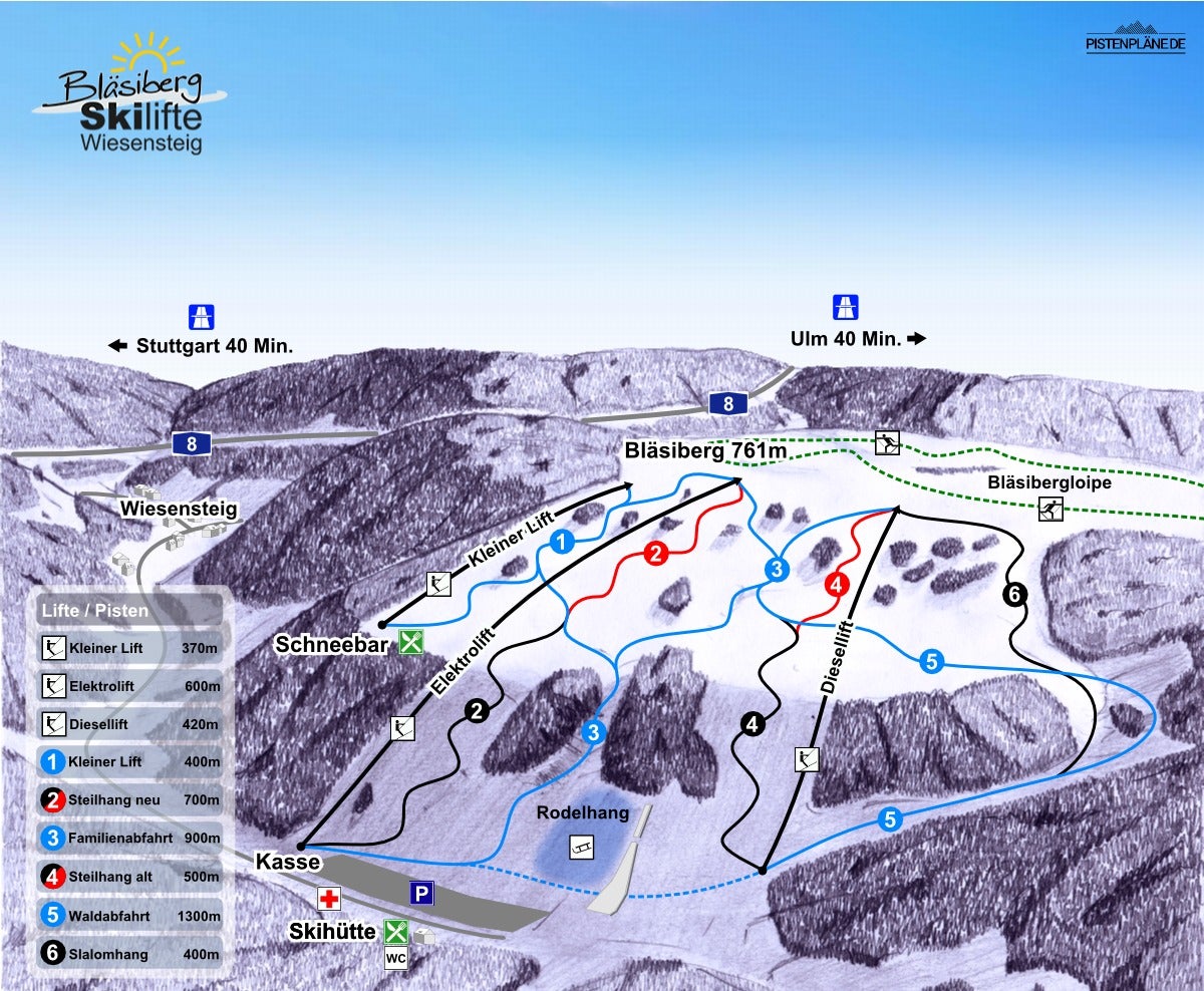Wiesensteig – mapa tras narciarskichPoznaj ośrodek Wiesensteig - zobacz na Skiinfo mapę tras i sprawdź, co stacja ma do zaoferowania: jakie trasy, wyciągi, koleje linowe, restauracje, schroniska itp. Kliknij, aby powiększyć mapę.Kliknij, aby powiększyć mapę tras