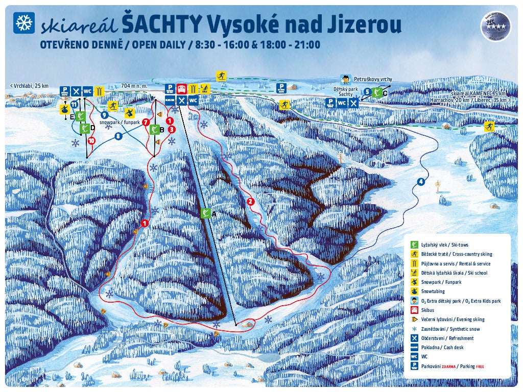Poznaj ośrodek Vysoké nad Jizerou - Šachty - zobacz na Skiinfo mapę tras i sprawdź, co stacja ma do zaoferowania: jakie trasy, wyciągi, koleje linowe, restauracje, schroniska itp. Kliknij, aby powiększyć mapę.
