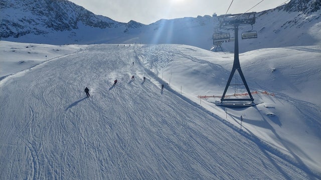 Kiedy pierwszego dnia dotarłem na lodowiec Stubai, pogoda nie zachęcała do długich zjazdów. Gęsta śnieżyca ograniczała widoczność, a wiatr na bardziej odsłoniętych odcinkach wymuszał ostrożną jazdę. Jednak świeży opad był dokładnie tym, czego ośrodek potrzebował – poprawił stan pokrywy śnieżnej i przygotował trasy na dwa kolejne, znacznie lepsze dni. A te pokazały Stubai w odsłonie, którą narciarze cenią najbardziej: stabilny mróz, mnóstwo słońca i szerokie przygotowane trasy.