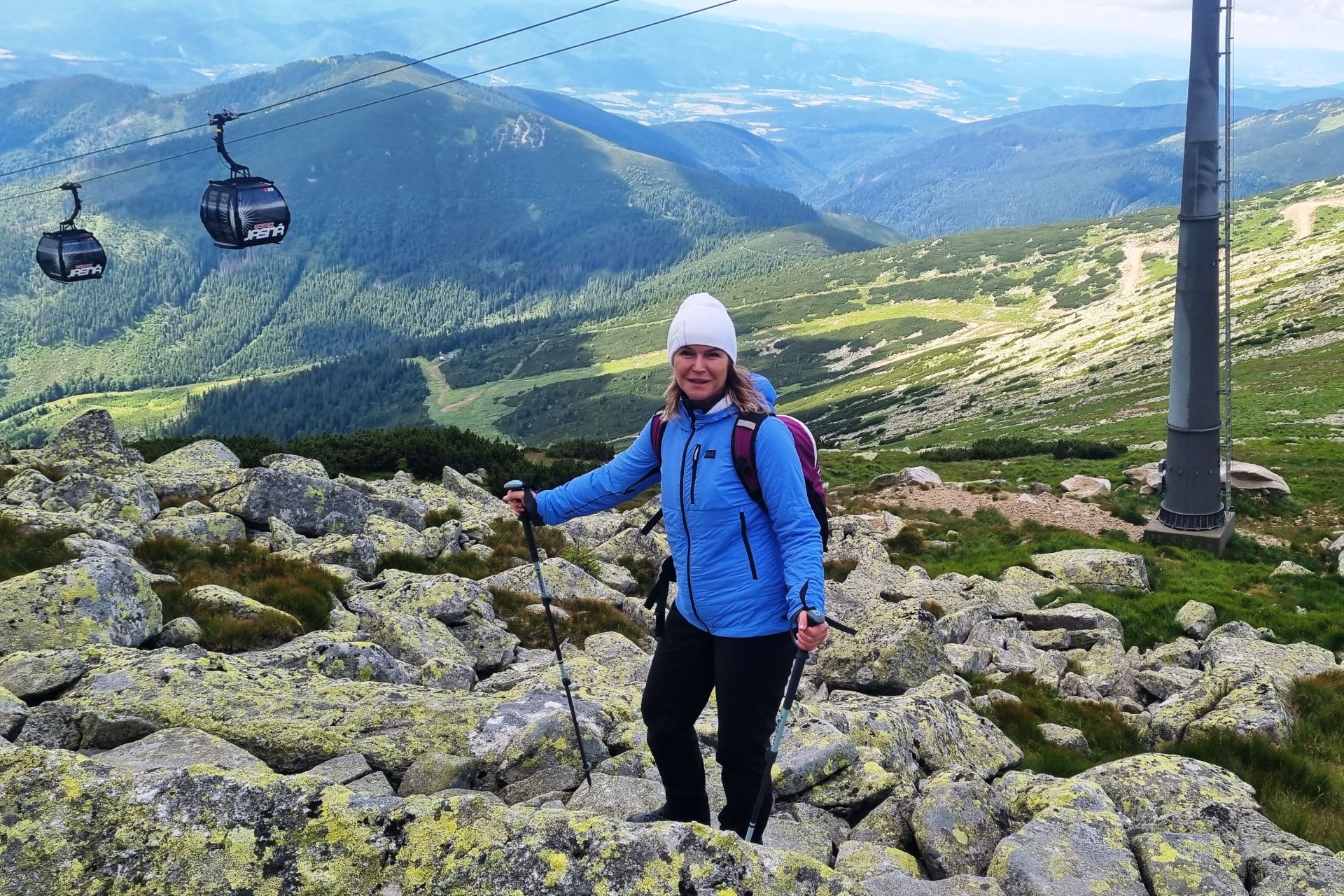 Wyobraźcie sobie, że w ciągu 20 minut jazdy gondolą wznosicie się na górską grań na wysokości 2000 metrów n.p.m. – gdzie Tatry rozciągają się po horyzont jak malowany pejzaż. Serce bije mocniej, gdy ruszacie ze stacji kolejki na szczycie Chopok – wzdłuż grani w stronę Dziumbiera – najwyższego szczytu Tatr Niskich. Przed nami przygoda i czterogodzinny trekking. Widoki są niesamowite – po obu stronach panorama Tatr – a przy tym brak tłumów! Tu naprawdę można być samemu z górami. Nie trzeba nikogo omijać, nikt nie depcze po piętach. Tylko Wy, zapierające dech widoki i majestatyczna cisza.