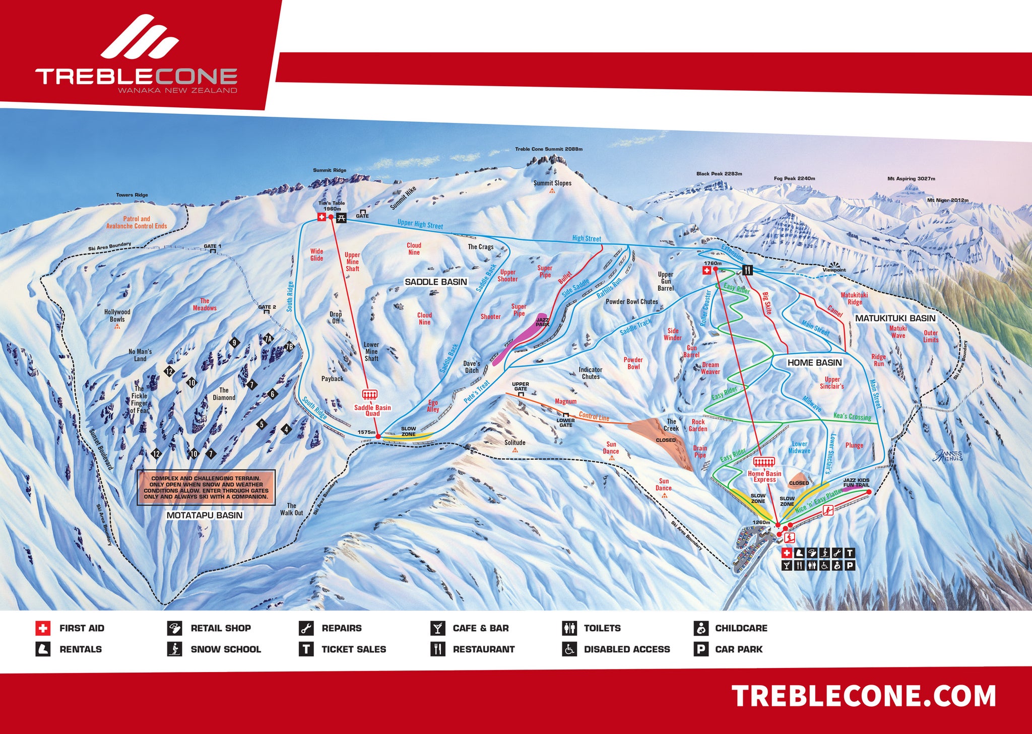 Teren narciarski Treble Cone to przestrzeń stworzona z myślą o dynamicznej jeździe i naturalnej eksploracji. Otwarte zbocza, szerokie przełęcze i głębokie kotły śnieżne dają ogromną swobodę w wyborze linii zjazdu. Dzięki dobrze rozmieszczonym 8 wyciągom o dużej przepustowości, szybko docieracie do kluczowych sektorów ośrodka bez konieczności długiego oczekiwania.