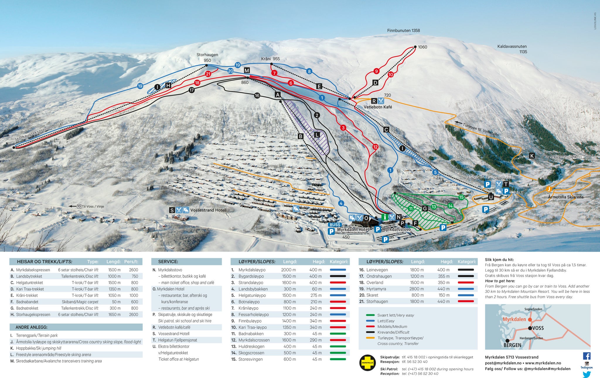 Voss Fjellandsby - Myrkdalen – mapa tras narciarskich